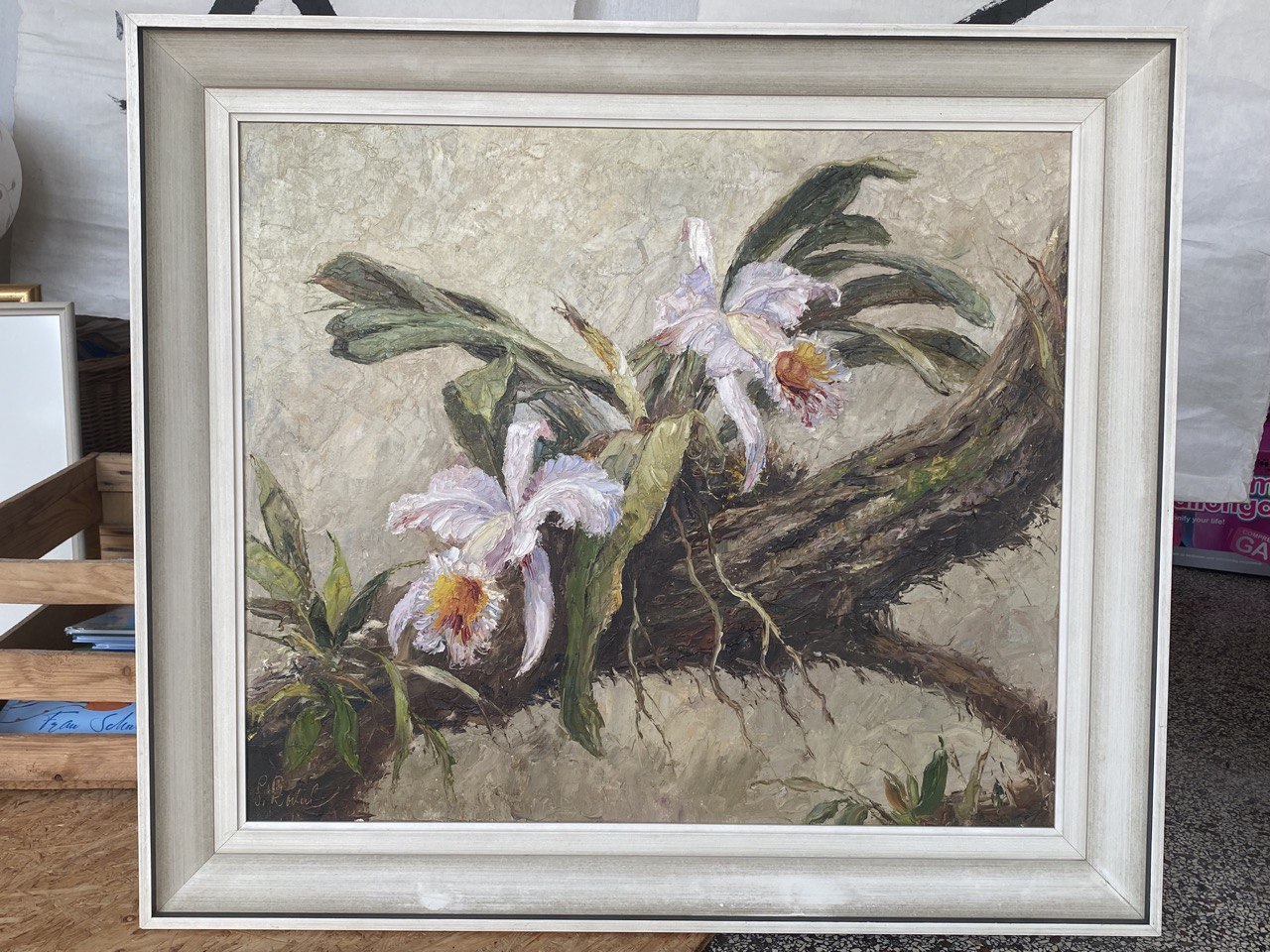 Schreibe die erste Rezension für „Großes Gemälde, Öl auf Leinwand, Motiv „Orchideen auf Baum wachsend““