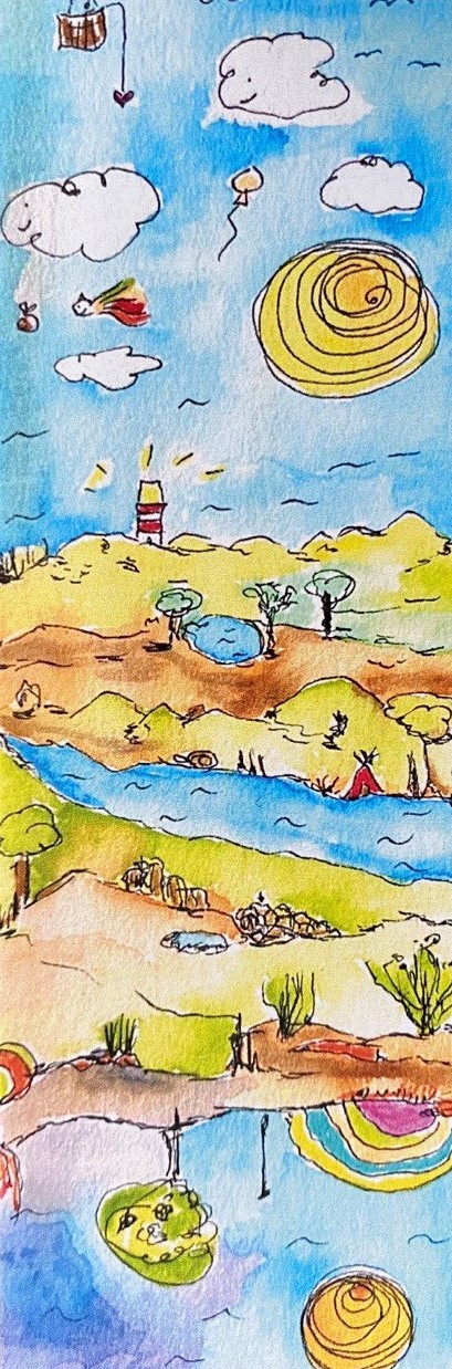 Lesezeichen Kunstdruck Motiv Claudia Gerling, nach Original-Handzeichnung, koloriert, Text Rückseite: “ Im Wind tänzeln und bei 3 springen…“